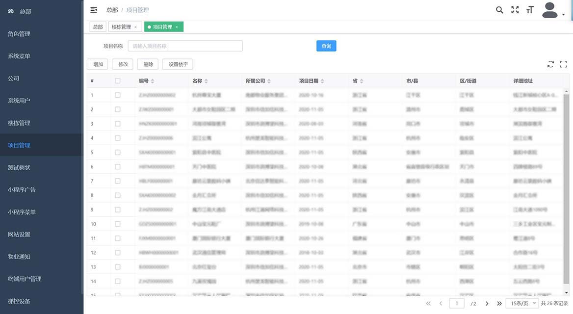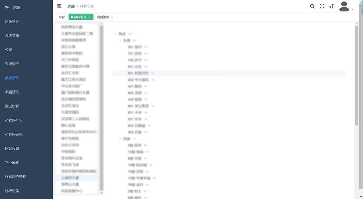 云梯控經銷商、工程商、物業登錄云平臺,可以在線管理項目、設備、用戶乘梯權限等,用戶登錄可查詢自己乘梯記錄等。