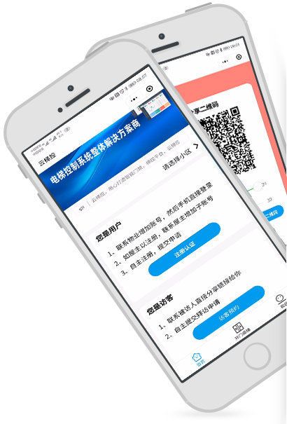離線二維碼算法,系統無需布線及通訊,業主二維碼動態刷新防盜用,支持刷碼直達,亦可業主生成訪客二維碼給來訪者乘梯。
